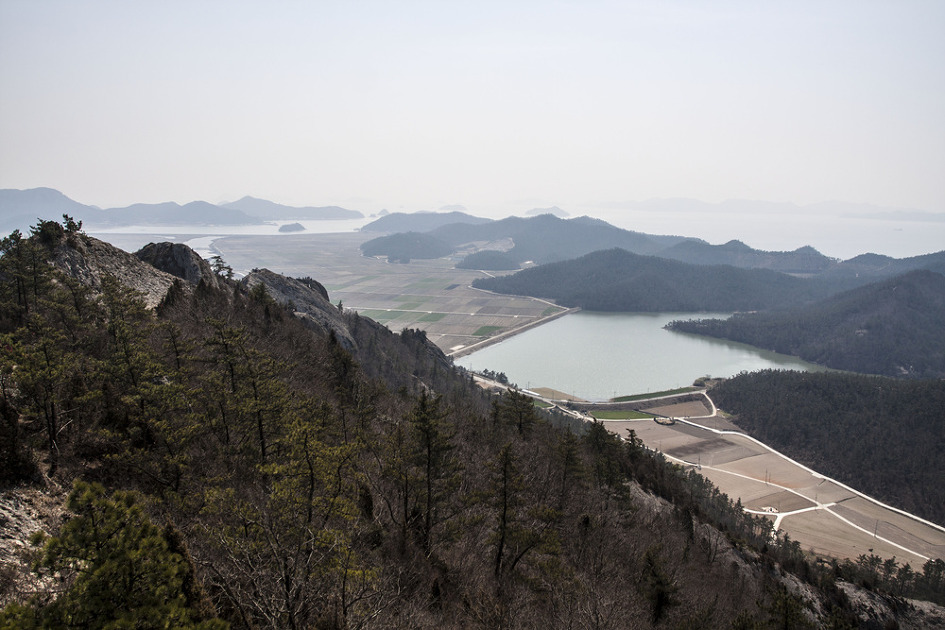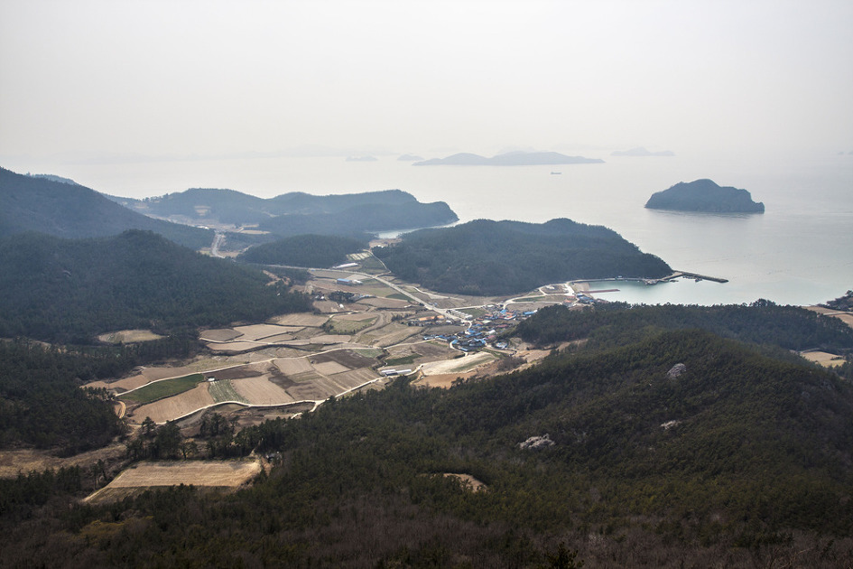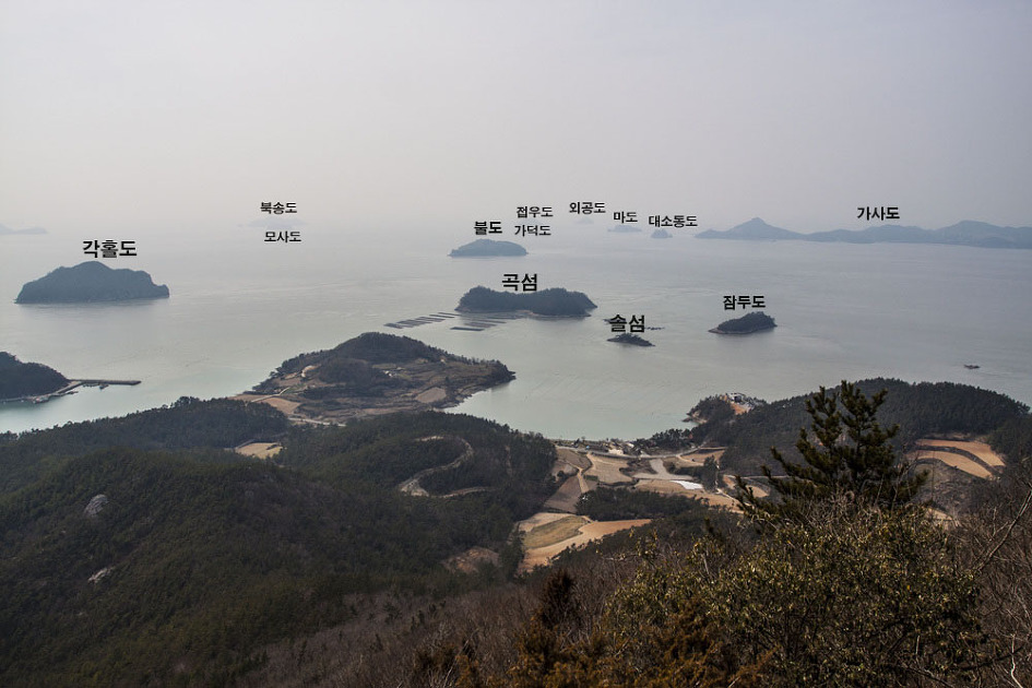 ▼ 이쯤에서 보는 풍경이 내 고향 화개산에서 들판을 보는 듯한 착각이 든다. 아지랭이가 피어오르는 들녘에서 삽자루, 칼자루 들고 고들빼기, 민들레 나물을 캐던 잊지 못할 추억도 엊그제 같기만 하다. 멀리 보이는 바닷가는 진도 팽목항이다.