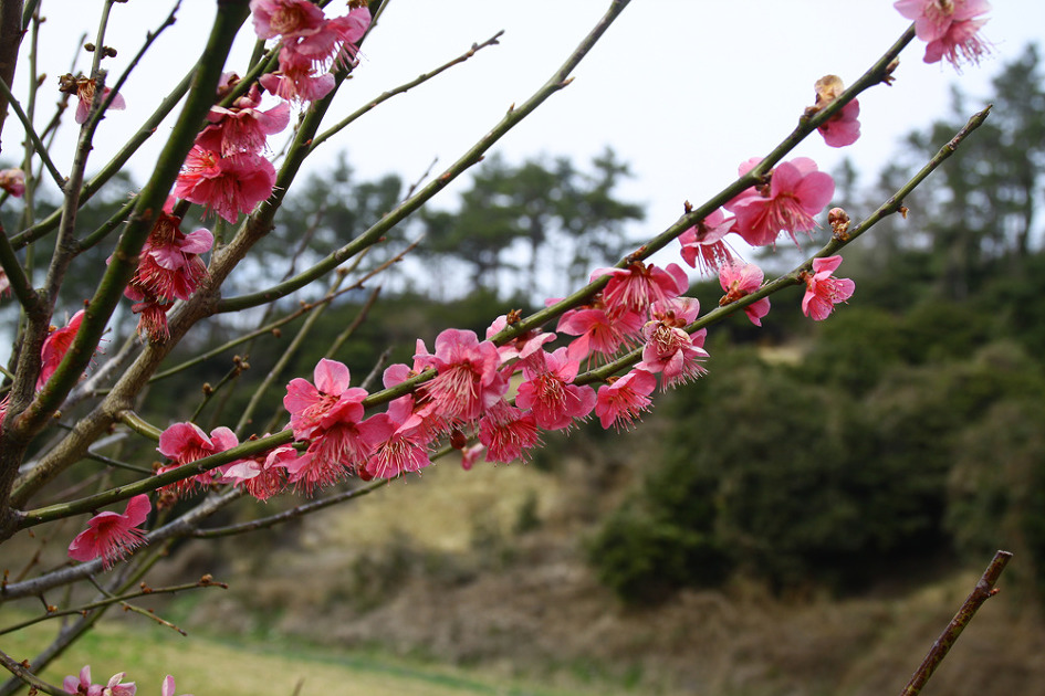 ▼ 매화는 거의 다 져가고 홍매화가 화사하게 피어 눈길을 끈다.