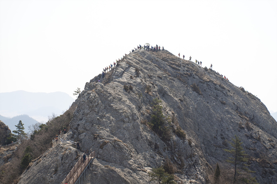▼ 산객들이 얼마나 많은지 능선마다 꼬리에 꼬리를 물고 줄로 늘어서 있다.