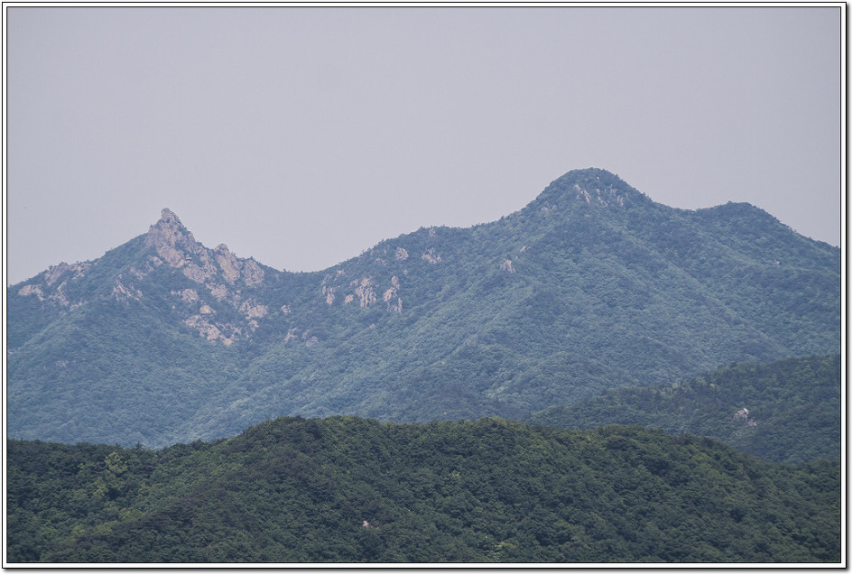 ▼ 당겨본 왼쪽 문필봉과 오른쪽 주지봉...미답사 지역으로 월각산으로 부터 저곳까지 종주하는 코스가 따로 있음을 알았다.