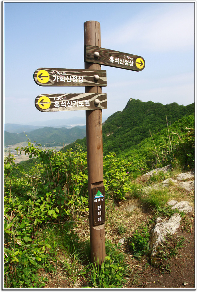 날이 부쩍 더워졌다. 언제 봄이 갔는지 녹음도 짙어간다. 작은 생수 두병이면 왠만한 산은 그냥 넘나들었지만 이젠 서너병 준비해야 한다. 그만큼 산행은 일기와 상관관계가 깊다는 얘기다. 오늘도 날씨가 꽤 덥다. 다행히 바닷가가 그리 멀지 않아서인지 바람이 간간이 불어 상쾌한 산행을 할 수가 있었으니 이젠 사실상 더위와 맞서야 할 마음의 준비부터 해야할 때가 된 것이다.