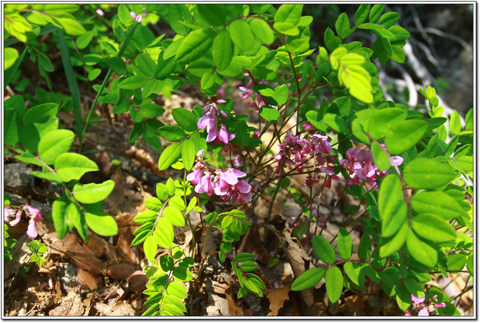 ▼ 땅비싸리꽃도 한창이다. 싸리나무 중에 가장 작은 나무로 주로 양지쪽의 등로에 많이 핀다.