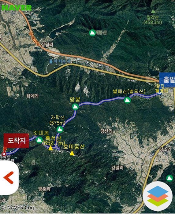 ▼ 별매산 465m, 가학산 575m