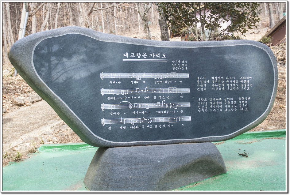▼ 길옆에 세워진 가덕도 노래비...그 지방의 지형을 알리는데 일조한 가요는 많다. 인천의 대표적인 노래는 당연히 김트리오가 부른 <연안부두>이고 부산은 조용필이 부른 <돌아와요 부산항>일 것이다. 이러한 가덕도 노래는 있는지 조차 몰랐지만 역시 김수곤의 <석모도에 노을지면>이란 노래도 그렇게 빛을 보지는 못했다.