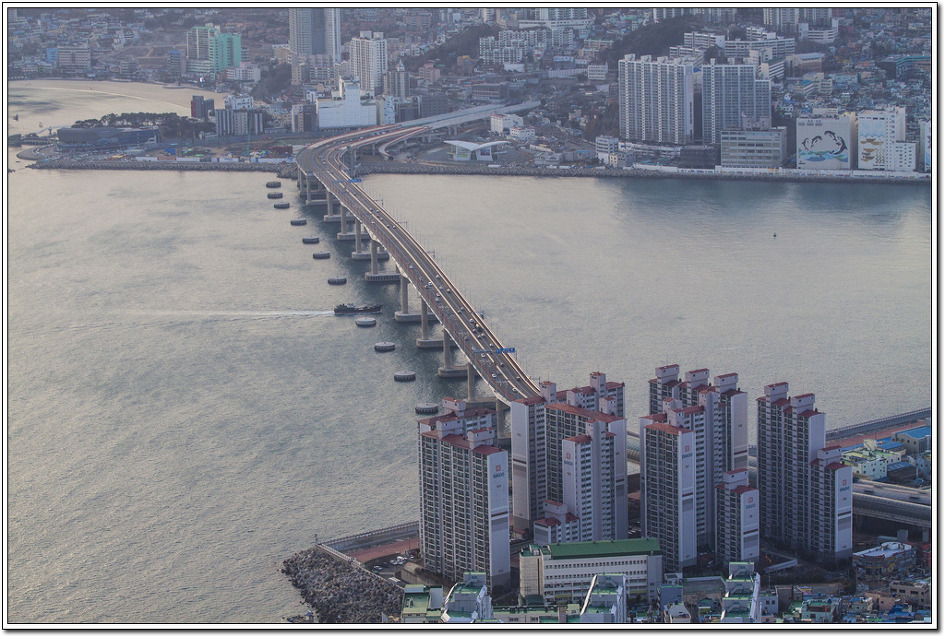 ▼ 멀리 동백섬과 해운대를 당겨봤다. 해파랑길1코스를 전에 걸어봤던 곳이다.