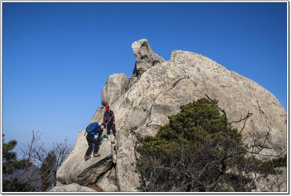 ▼ 2봉을 오르고 나서 자이를 회수하려 맨 몸으로 내려가는 즐풍님, 암릉은 오르는 일 보다 내려가는 일이 쉽지 않다는 것은 산꾼이면 상식으로 아는 일이다.