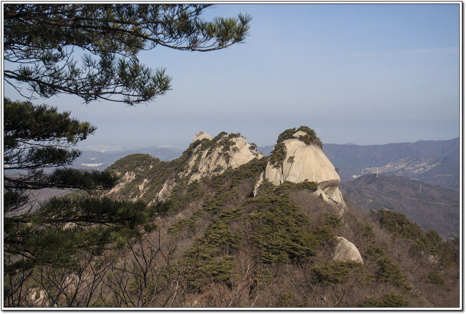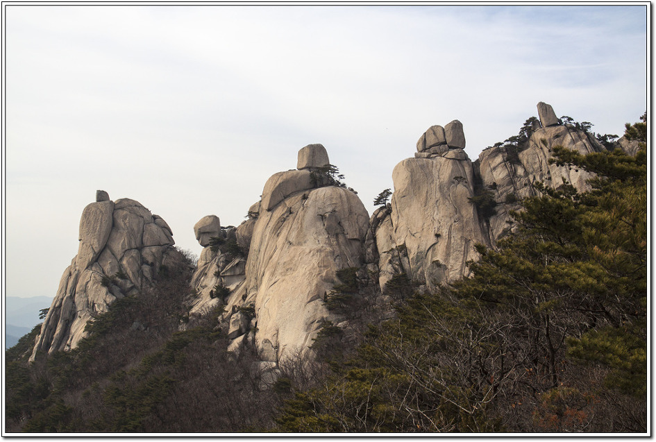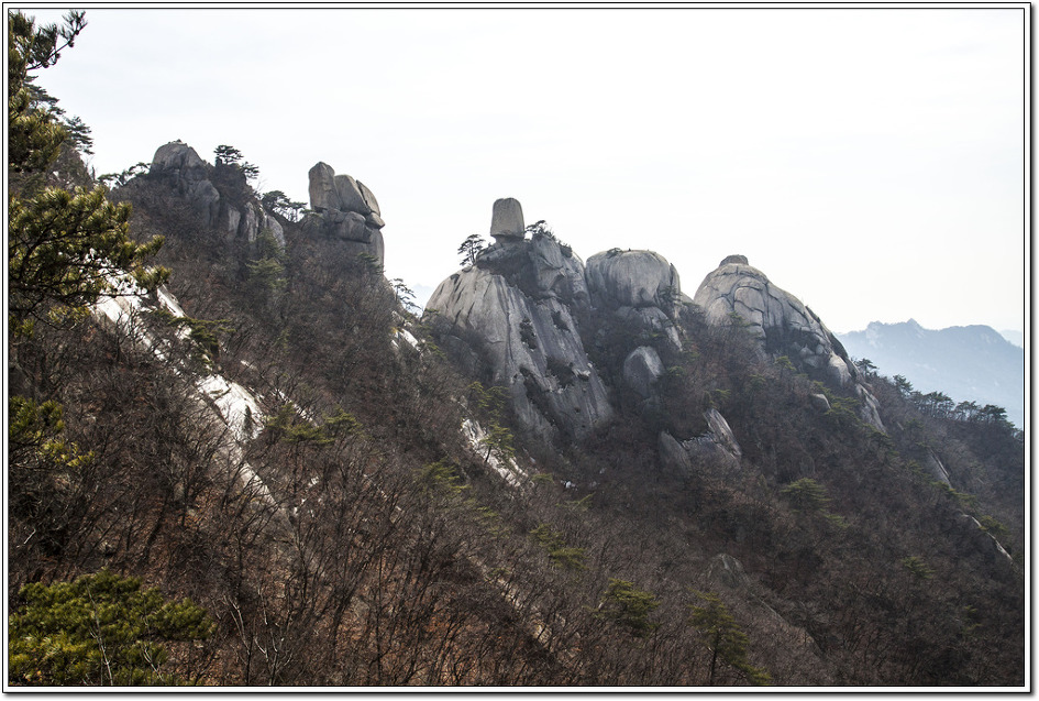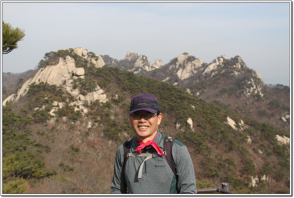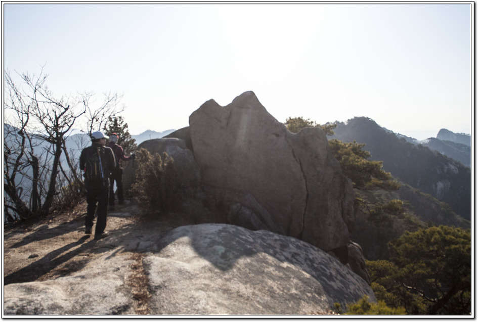 여기서 4봉은 3봉에 가려서 보이지 않는다. 맨 밑에 있는 것은 조금전에 올랐던 관음봉.