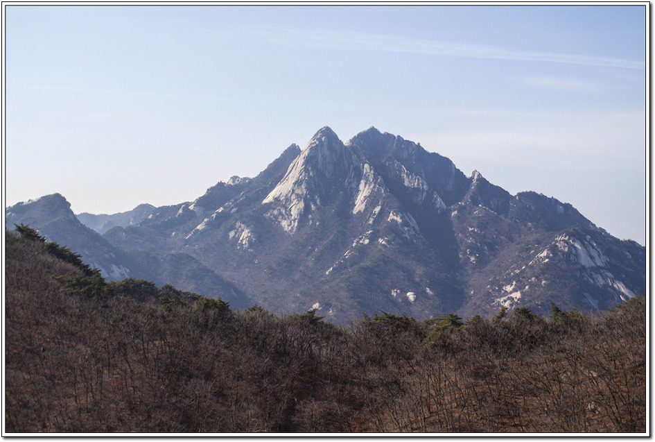 ▼ 당겨본 북한산 정상, 가운데 보이는 숨은벽 능선에서 이곳을 보던 때가 벌써 3년전 이맘 때다.