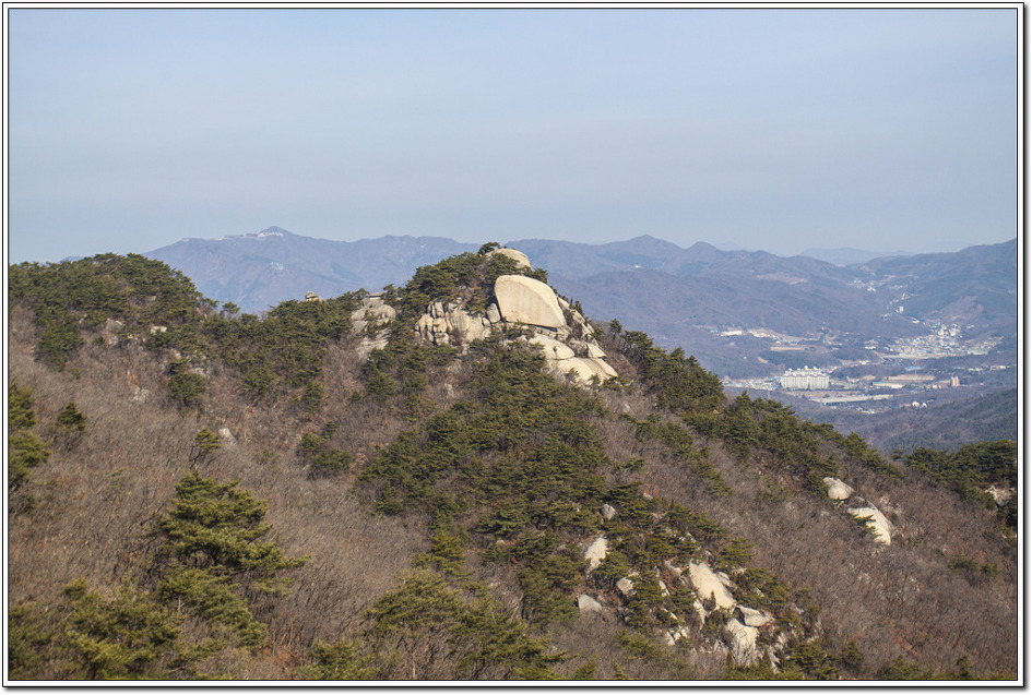 ▼ 좀 전에 둘러본 암릉이다. 저곳에서의 전망이 일품이다.