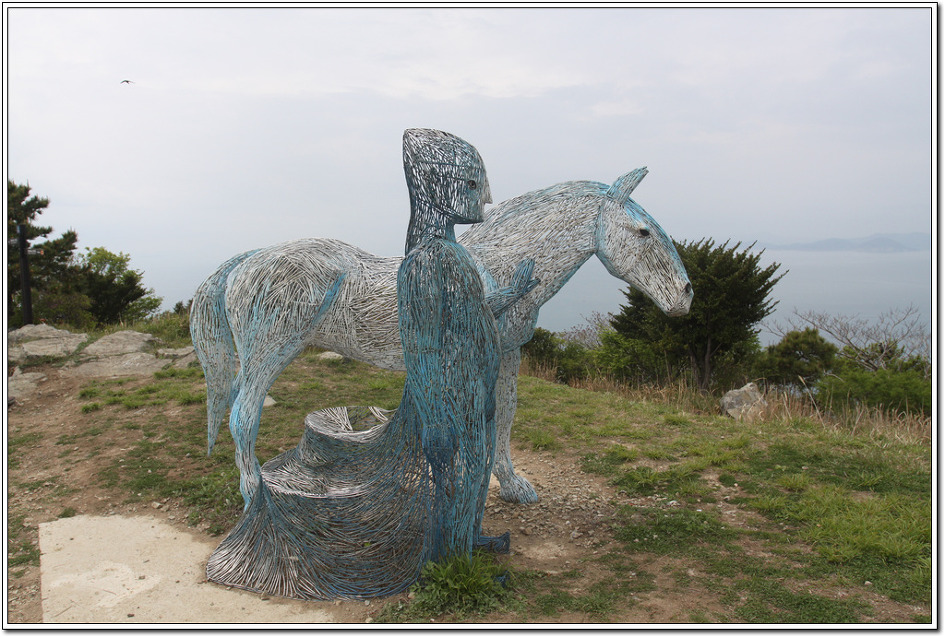 ▼ 여객선에서 내리니 조형물 한개가 눈길을 끈다. 바다를 향해 임신한 여인네의 무릎을 꿇고 있는 모습이다. 바다를 품은 여인상이라고 하는데 설명문이 없다.