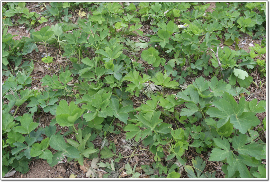 ▼ 밭은 대부분 바닷가에 식생하는 갯기름나물(=방풍나물)을 재배한다. 향이 좋아 쌈을 싸먹거나 데쳐서 나물로 먹는다. 예로부터 풍을 예방한다고 하여 붙여진 이름이다.