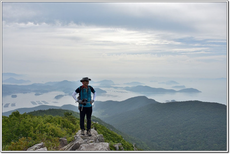 ▼ 뒤돌아 본 백운봉 능선, 섬산행의 대부분이 조망은 좋지만 뜨거운 여름날에 산행하기는 버겁다. 재작년 옆지기와 여름 휴가에 욕지도와 소매물도를 산행하다 혼쭐이 난 추억을 떠 올려 본다.