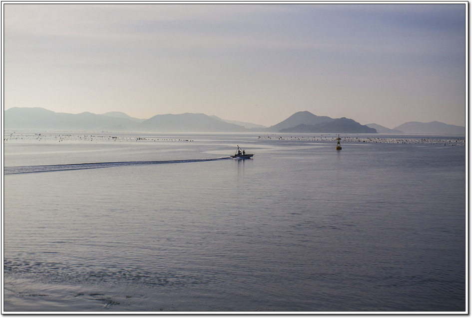 ▼ 금일도를 배경으로 잔잔한 바다위를 미끄러지 듯 지나가는 배가 오늘 따라 시원해 보인다.