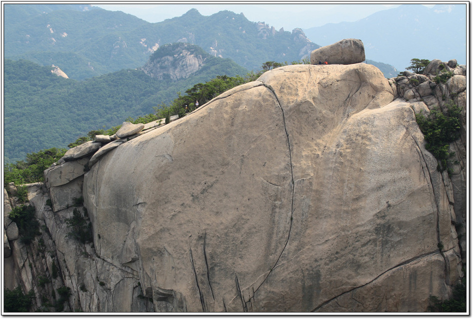 ▼ 암릉의 크기는 앉아있는 산객을 보면 알 수 있다.