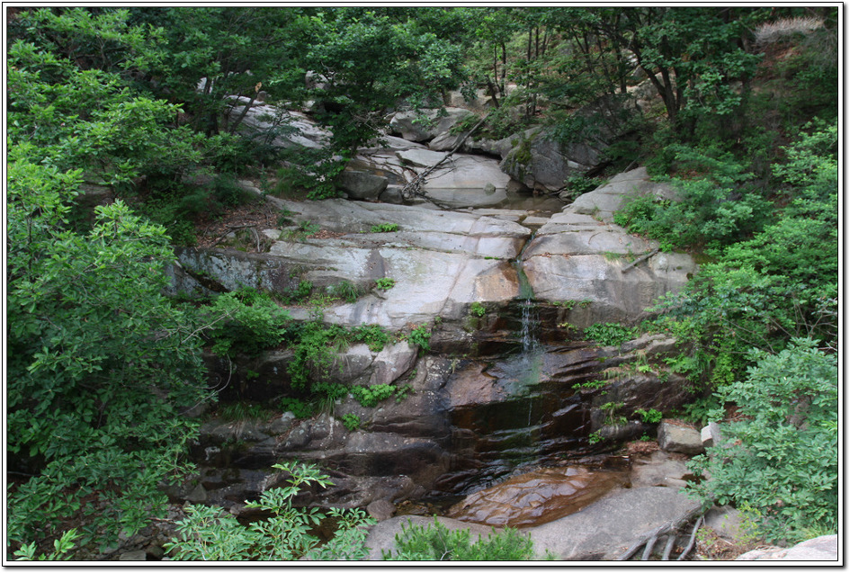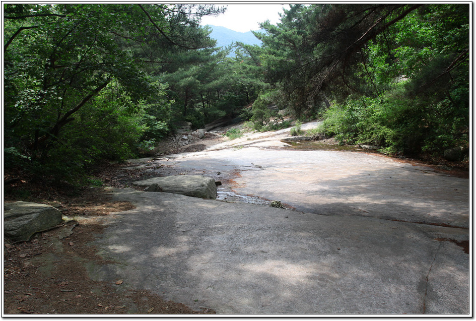 ▼ 계곡에 내려서자 이러한 마당바위가 발걸음을 멈추게 한다. 이곳에서 30분 정도를 느긋하게 누워 쉬다가 가기로 한다.
