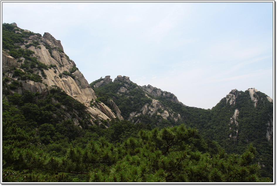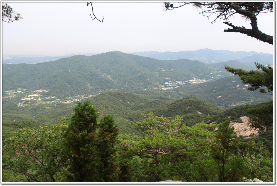 ▼ 거의 다 내려와 둘레길로 접어들면서 효자동의 한 냉면집에 들어가 시원한 냉면 한 그릇을 비우고 다시 주차된 사기막골로 이동한다. 몸을 간단히 씻기위해 계곡물을 찾으니 국립관리공단에서 설치해 놓은 철책으로 충의문을 돌아 반대편에서 씻고 귀가를 하게 됐다. 둘레길 충의문에서 촬영한 북한산으로 왼쪽으로 부터 영장봉, 인수봉, 숨은벽, 가운데 백운대와 그 밑으로 파랑새능선, 오른편이 염초봉이다.
