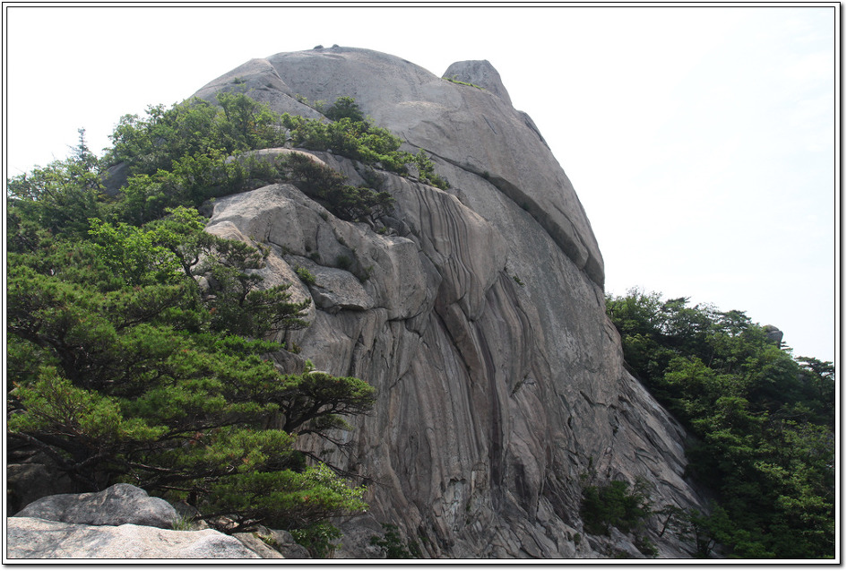 ▼ 코끼리바위에 도착, 올라볼 수도 있겠으나 안전확보를 위해 자일을 이용해야 하는 번거로움이 있어 그냥 통과하기로 한다.