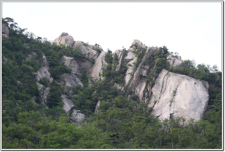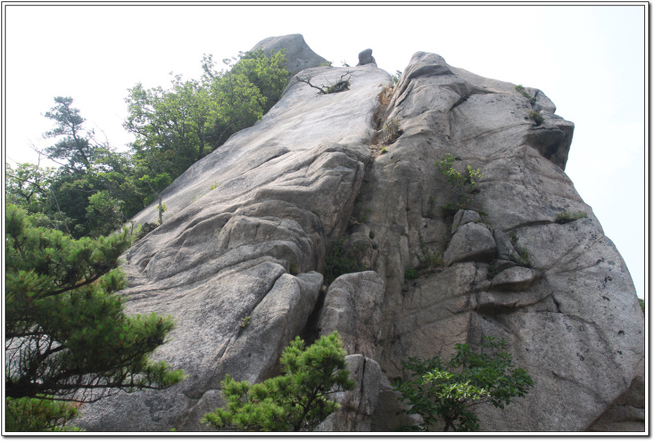 장군바위는 암벽등반 장비를 제대로 갖춰야만 오를 수 있어 눈팅만 할 수 밖에 없다. 바로 앞에 하늘을 쳐다보는 형상의 물개바위가 자리잡고 있다.