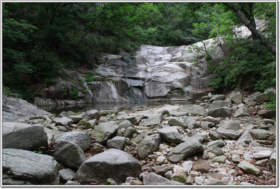 ▼ 올해는 농사에는 지장이 없을 정도로 적당한 강우량을 보였는데 밤골인 이 계곡은 고인물 외에 물이 흐르지 않고 날파리만 우글거린다.