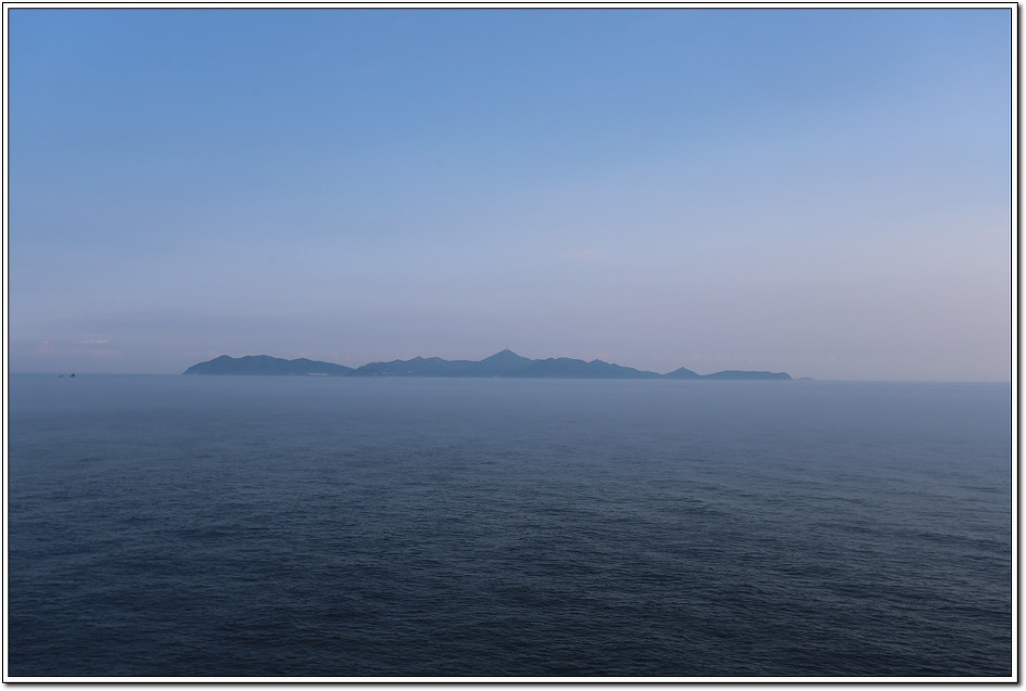 ▼ 백령도에서 남쪽으로 보이는 대청도...가운데 통신탑이 보이는 산이 삼각산이다. 작년 8월 27일 트레킹을 했으니 1년이 됐다. 백령도는 곳곳에 군사 시설 등으로 출입이 제한되어 있어 트레킹 코스 보다는 관광코스로 차량으로 이동하며 관람할 수밖에 없다. 대청도 트레킹은 지금 생각해도 멋진 추억으로 가끔 생각이 난다.