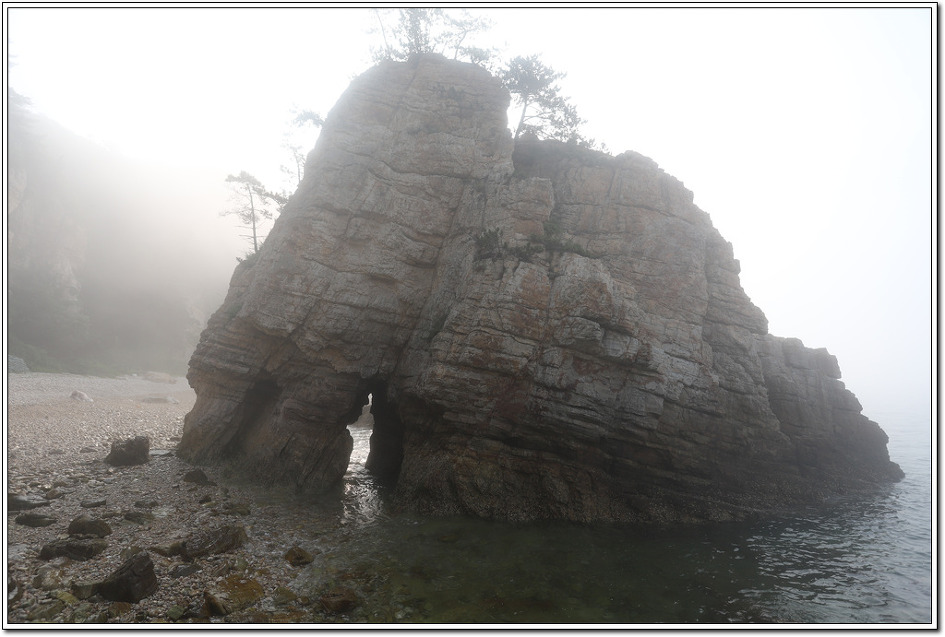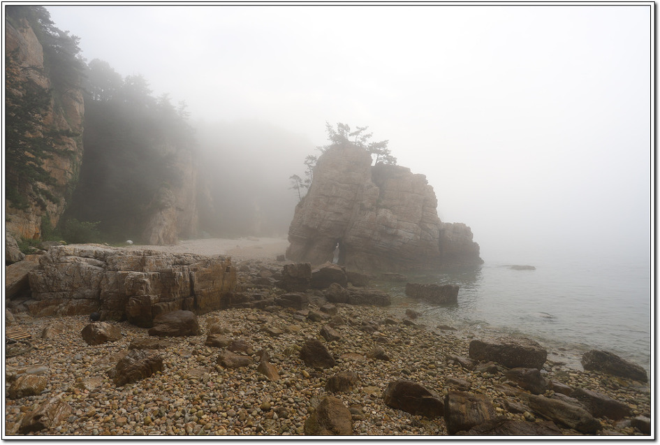 일행 모두의 뱃시간은 12:50분이고 우린 13:30이니 다른 분들의 뱃시간에 맞출 수 밖에 없어 한시간 전에 항구에 가야하는 시간 생각하면 점심식사 시간 빼고 3시간 밖에 주어지지 않는다. 콩돌해변을 먼저 가려는 계획은 안개가 잔뜩 끼어 용기포등대해변을 먼저 들러 보기로 한다.
