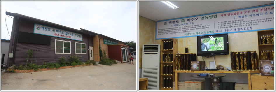 ▼ 잠시 백령도 쑥 하수오 영농식품 조합에 들러 쑥과 하수오에 대한 설명을 듣고 액기스 판매에 들어간다. 20여분의 시간동안 시원한 에어컨 바람을 쏘이니 바닷가에서 흥건히 흘렸던 땀이 겉옷까지 젖어 들었는데 뽀송하게 마르면서 땀은 쏙 들어갔다. 지난번 둔덕산을 가던 중 버스에서 양구의 현지 농민이라