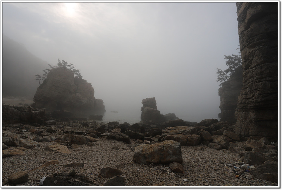 ▼ 대낮에도 기온차로 해무가 끼는 상황에서 아침은 말할나위가 없다. 해가 어느 정도 올라오니 그래도 시야가 조금은 확보되어 다행이다.