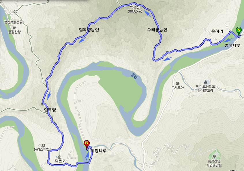 ♣ 산행코스: 점재교-운치리(잠재마을)-백운산정상-칠목령-제장교-취수장