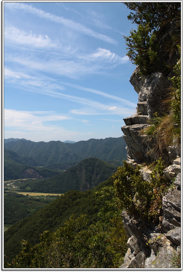 ▼ 동강을 따라 엄청난 절벽위의 등로가 가파른 오르막처럼 내리막도 가파르긴 마찬가지여서 비가 왔을때는 미끄러져 넘어질 위험이 많다.