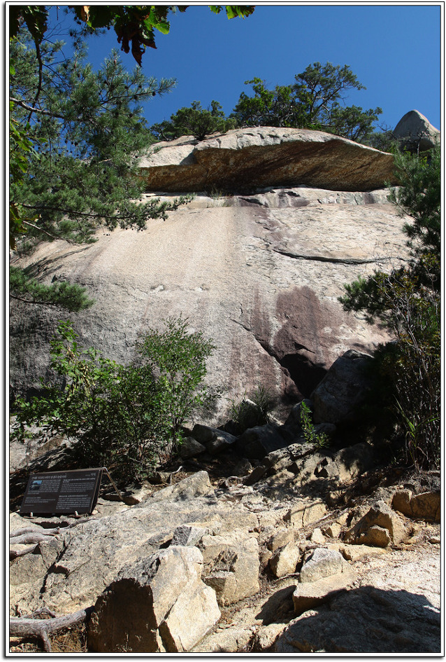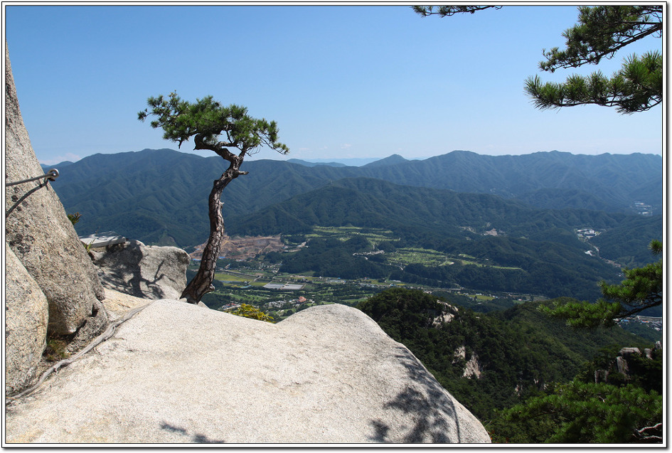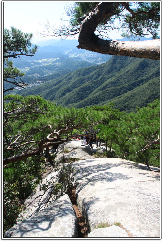 ▼ 암릉에 모든 것을 의지한 소나무가 애처롭기까지 하다. 사람들 틈바구니 속에 얼마나 버틸지가 의문이다.