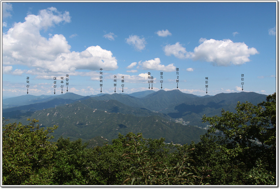 ▼ 멀리 화악산과 명지봉, 명지2봉, 연인산이 눈에 들어온다.