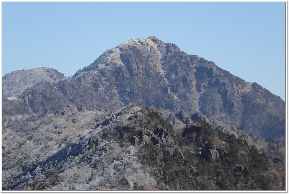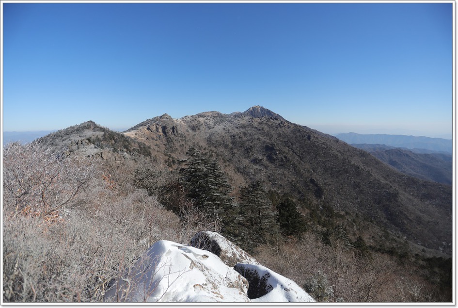 ▼ 좀 전과는 달리 언제 조망이 없었냐는 듯 왼쪽 촛대봉이 보이고 영신봉으로 해서 멀리 반야봉, 노고단까지 보이는 날씨다.