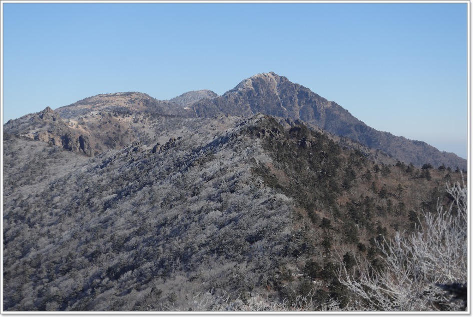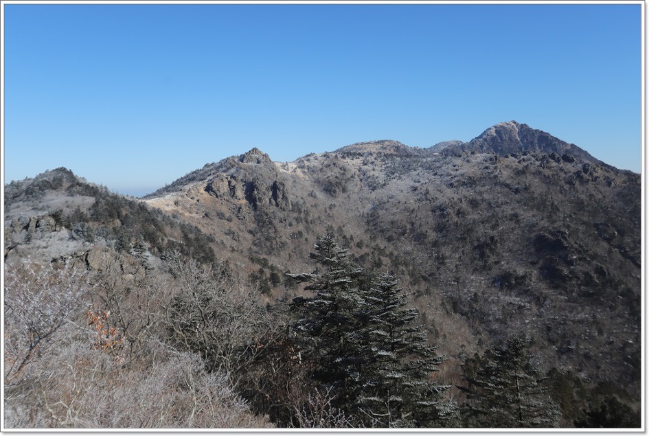 ▼ 뒤돌아 본 풍경...멀리 천왕봉으로 부터 제석봉, 연하봉이 한눈에 들어온다.