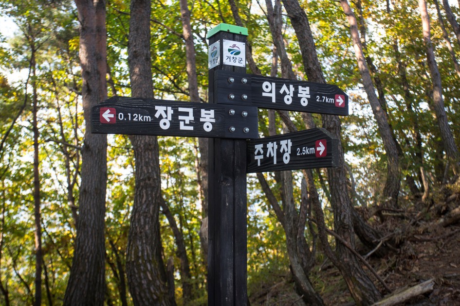 ▼ 건물에서 조금 올라가니 바로 국내 최초의 Y자형 출렁다리가 산뜻한 모습으로 선을 보인다. 600m의 세봉우리를 연결하기 위해 110m의 길이로 설치되었는데 명칭은 11월 20일까지 거창군 홈페이지를 통해 대국민 공모전 신청을 받고 있는 중이다. 내년 4월 개통예정으로 왼쪽으로 가면 마장재로 향하는 등로이고 오른쪽은 전망대로 아직 등로가 만들어져 있지 않다.