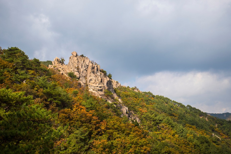 ▼ 우두산을 지나면 오를 의상봉을 당겨봤다. 의상대사가 참선을 했다는 전설이 있을만큼 풍경이 아름답다.