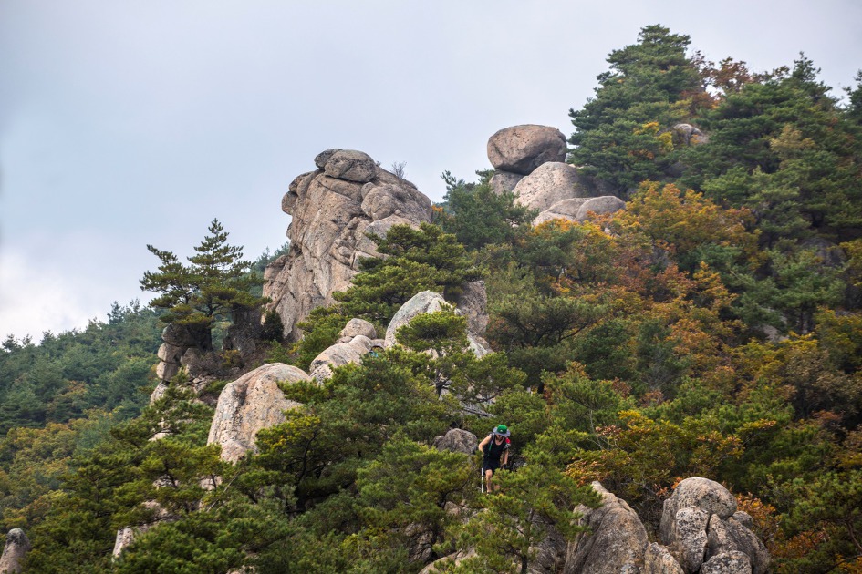 ▼ 암릉과 바위들이 나타나면서 멋진 풍경이 연출되고 카메라 촬영은 더욱 바빠진다.