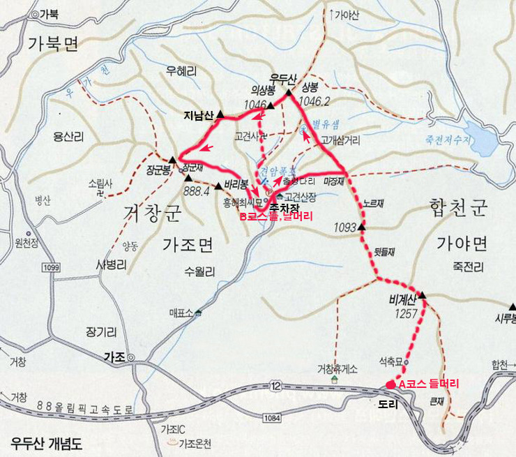 ♣ 소재지: 들, 날머리-경남 거창군 가조면 수월리, 정상-경남 거창군 가북면 우혜리