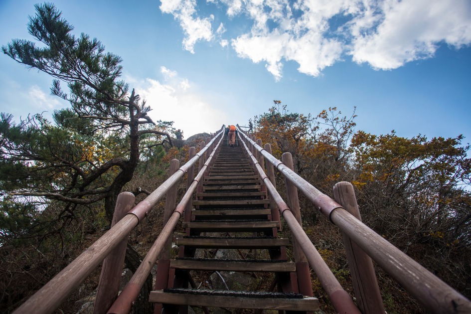 ▼ 의상봉 정상 마지막 급경사 계단...이러한 계단을 지난 세월 수도 없이 올랐으니 별로 힘들 것도 없다.