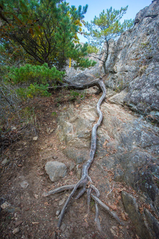 ▼ 등로에 뿌리가 거의 노출되어 식생하는 소나무...그 끈질긴 생명력에 감탄할 뿐이다.