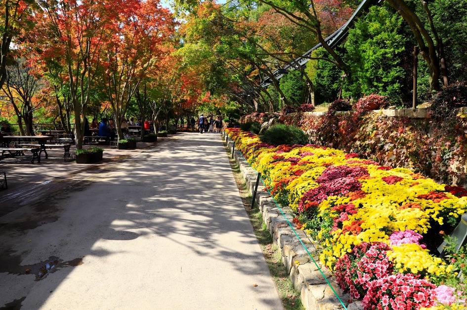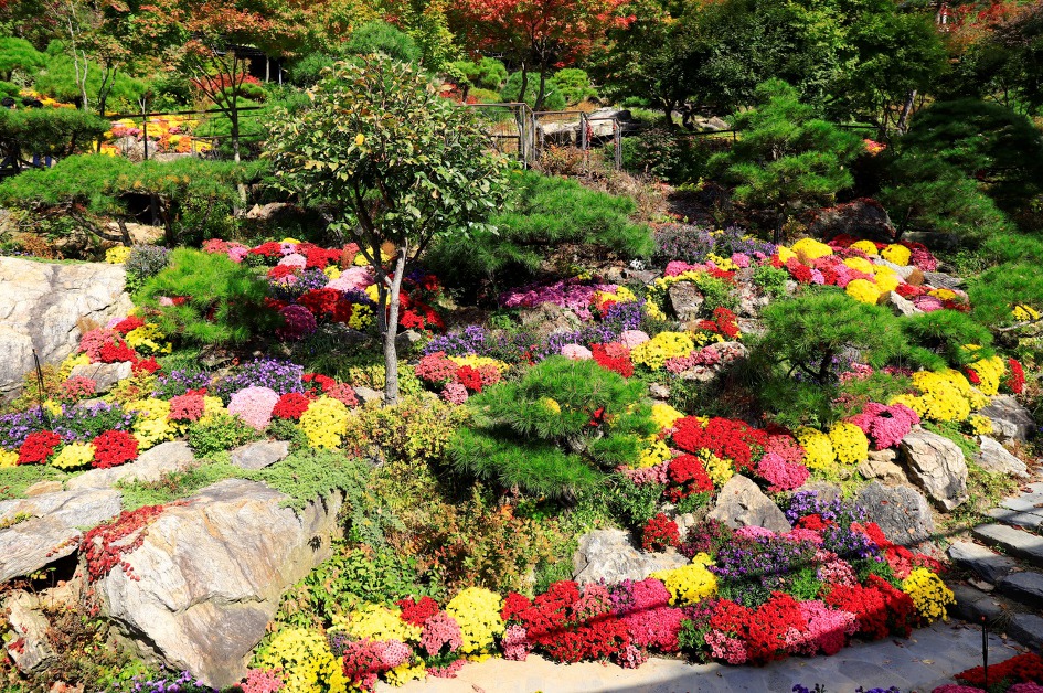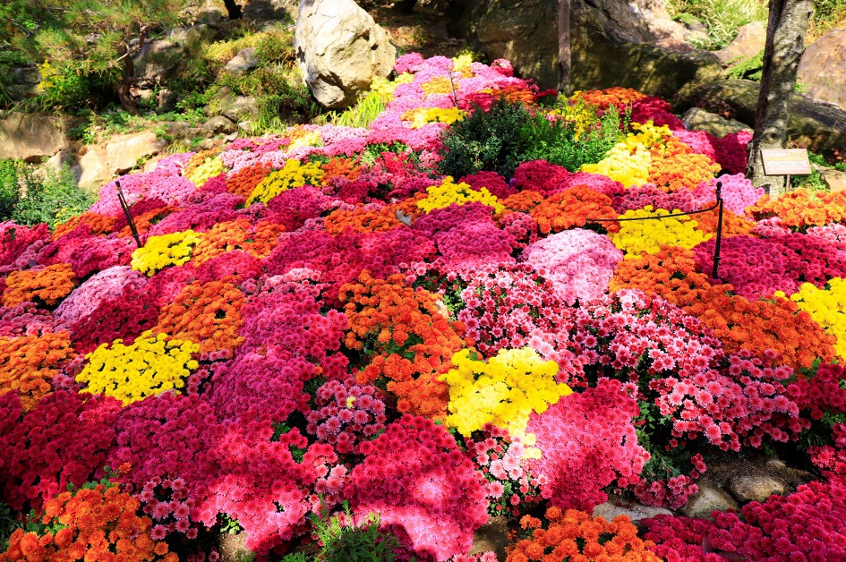 ▼ 바야흐로 국화의 계절이다. 단풍인지, 국화인지 꽃대궐이다.