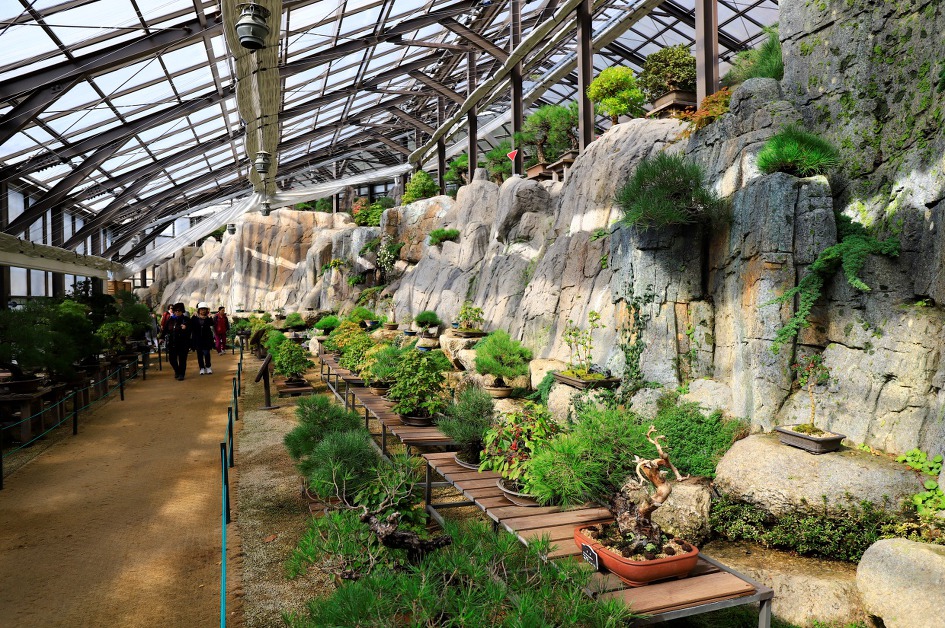 ▼ 수많은 실내외의 분재만 감상을 해도 반나절 시간 보내는 일은 어려울 것 같지 않다.