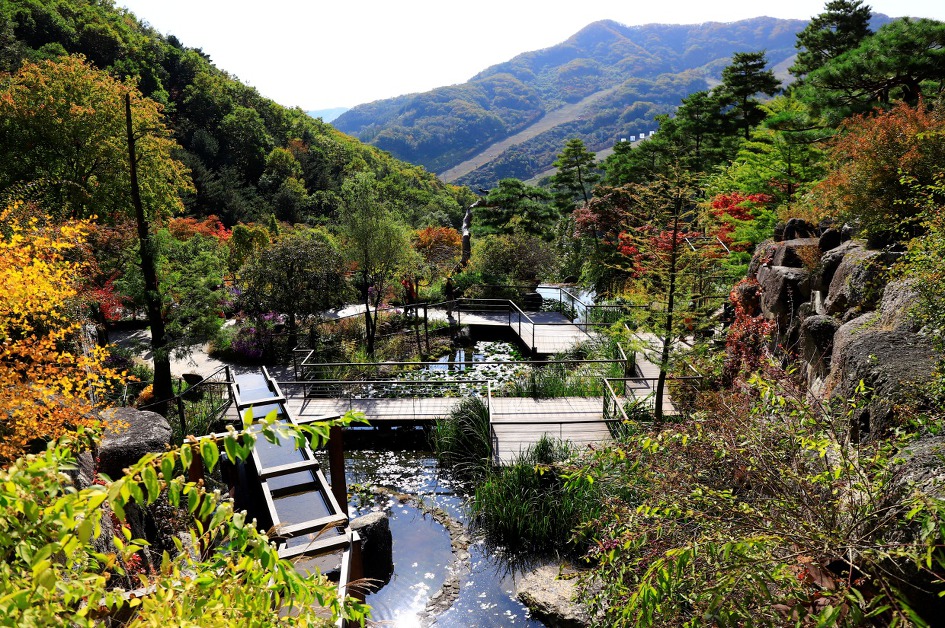 화담숲이란 곳의 주차장에 들어서니 스키장 리프트가 보이고 주변의 리조트 건물등 각종 시설이 들어 서있어 조용한 숲이란 생각이었는데 의외의 시설들에 조금은 실망이 든다.