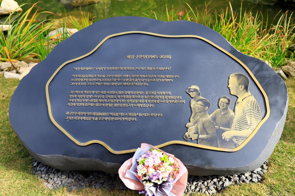 ▼ 화담이란 명칭이 어떻게 붙여졌는가도 의문이었다. 조선 중기의 학자 서경덕의 호가 화담(花潭)이었는데 황진이(진랑(眞娘))와의 사랑이야기가 생각이 나면서 서경덕과 숲과의 관계도 생각해 봤는데 전혀 관계가 없음을 알게 됐다. 구본무 전 LG그룹회장의 아호인 和談으로 '마음을 터놓고 정담을 나눈다'는 의미라고 돌판에 쓰여져 있다.