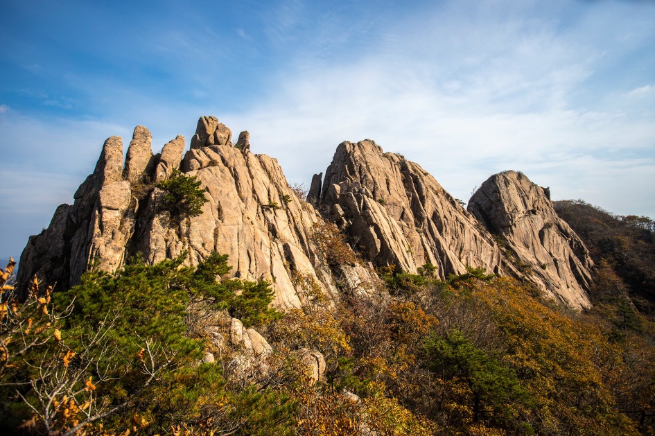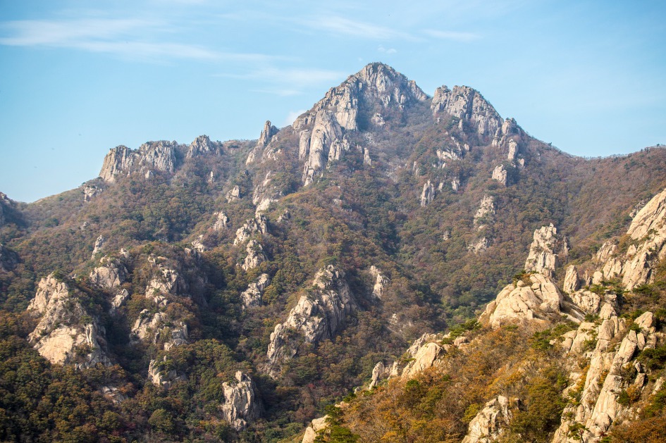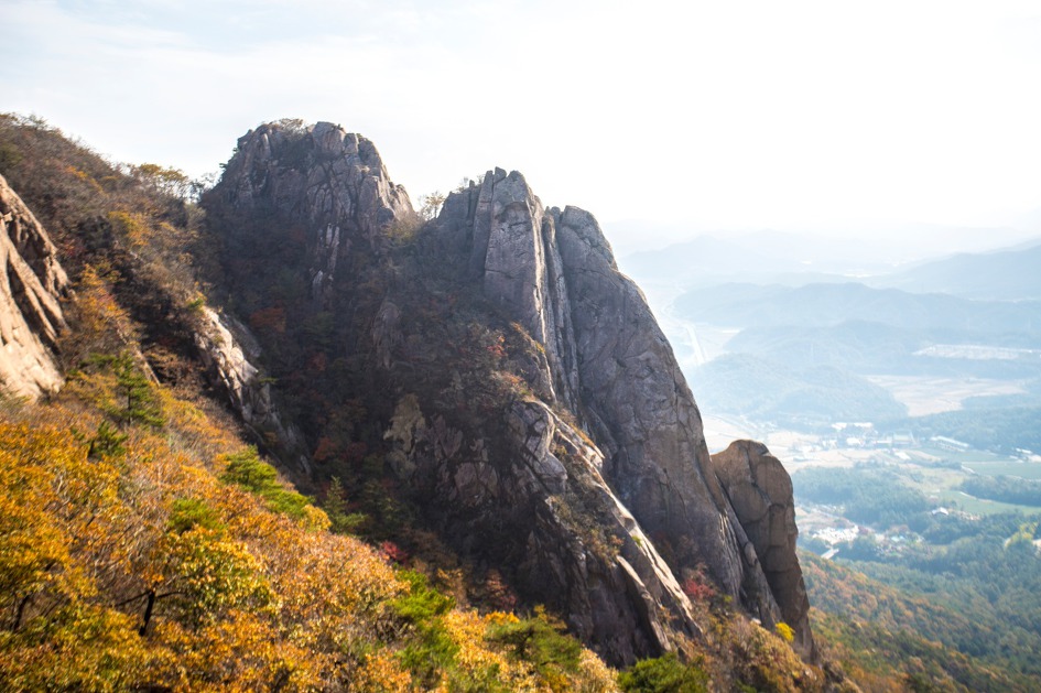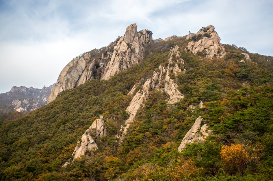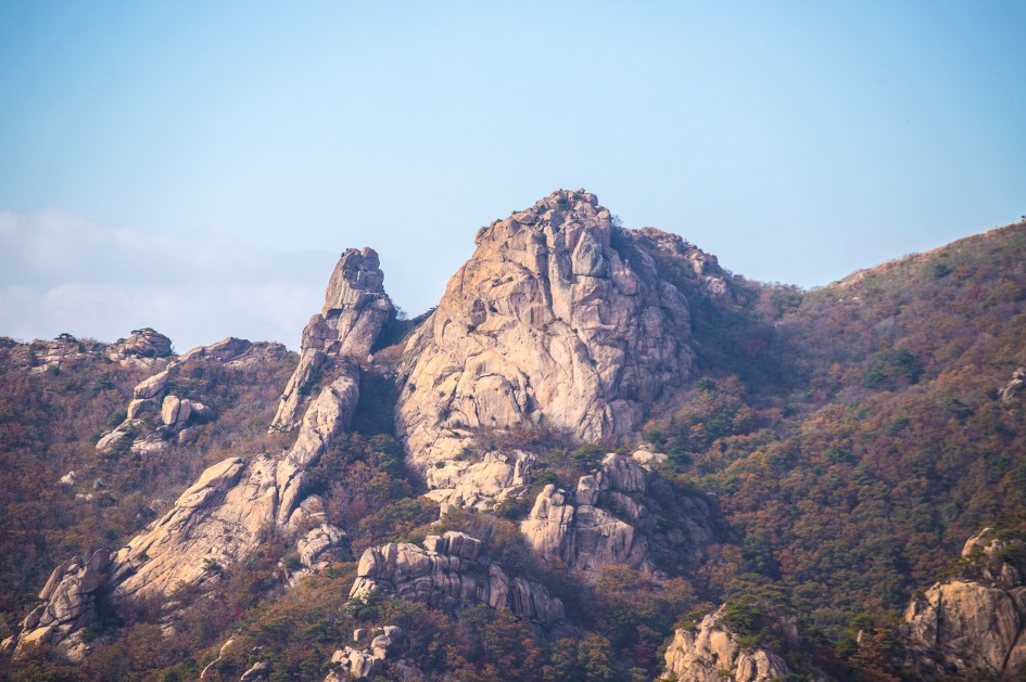 ▼ 비슷한 암봉이 세개로 이뤄져 있어 이곳에서 보면 마치 삼형제봉 같아 보인다.