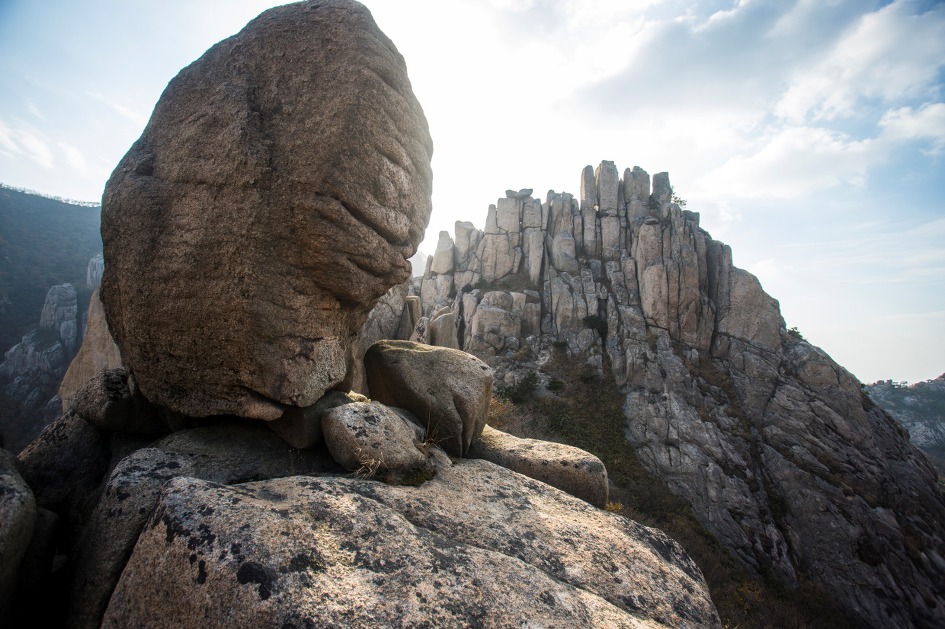 ▼ 암봉 위에 놓여진 두개의 바위가 신비롭기까지 하다.