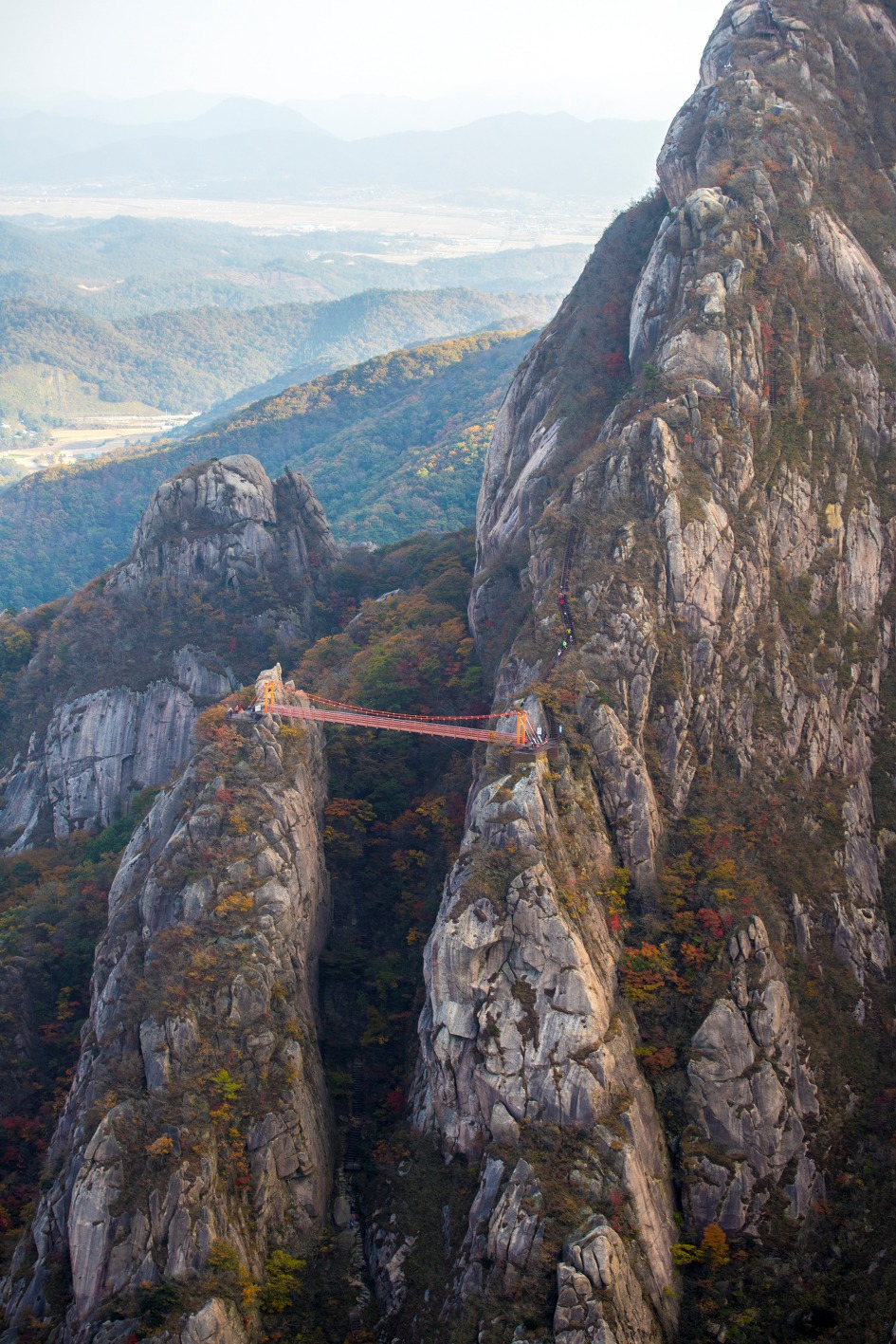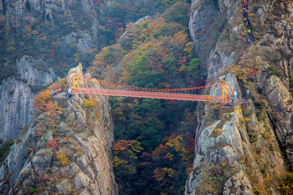 ▼ 드디어 구름다리 정면 앞까지 왔다. 내가 제일 궁금해 하던 위치에서 구름다리를 보며 이렇게 촬영할 수 있다니, 더군다나 가을정취를 흠뻑 느낄 수 있는 풍경이어서 오늘의 하이라이트 풍경이라 해도 과언은 아니겠다.