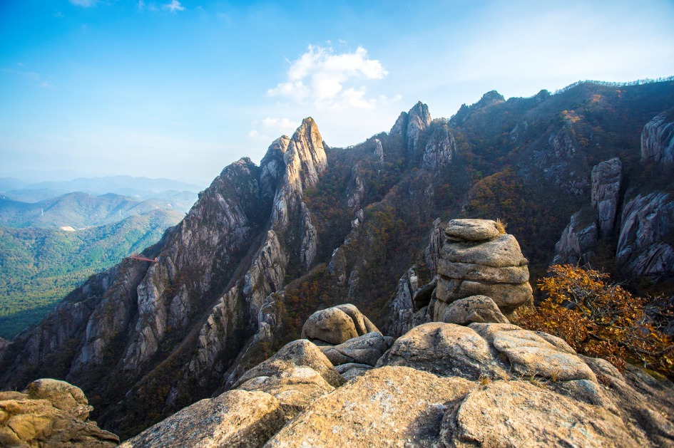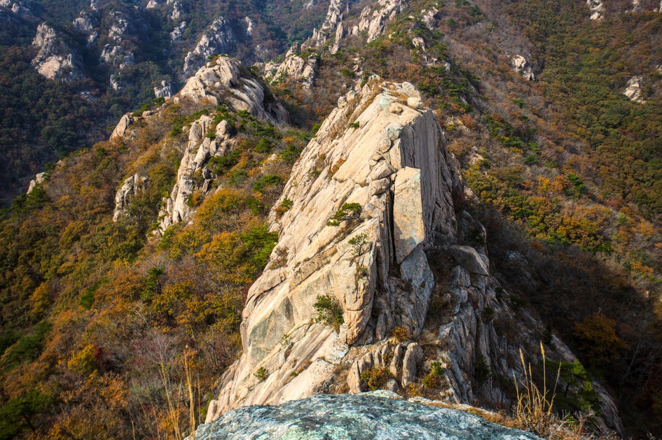 ▼ 쐬기바위에서 아래로 펼쳐진 암봉들...