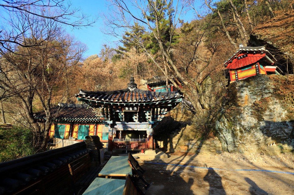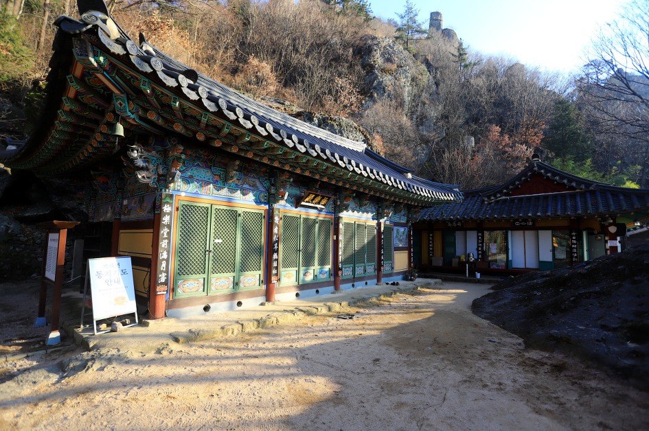 ▼ 주차장 바로 윗편에 석굴암이라는 암자인데 석굴은 온데 간데 없고 쌩뚱맞게 지상에 우뚝 서 있는 모습에 속았다는 느낌을 지울 수가 없다. 이쪽 편 산능선에도 예사롭지 않은 바위들이 즐비해서 산행 코스를 다양하게 한다면 더 많은 관광객들을 유치할 수 있으리라 본다.