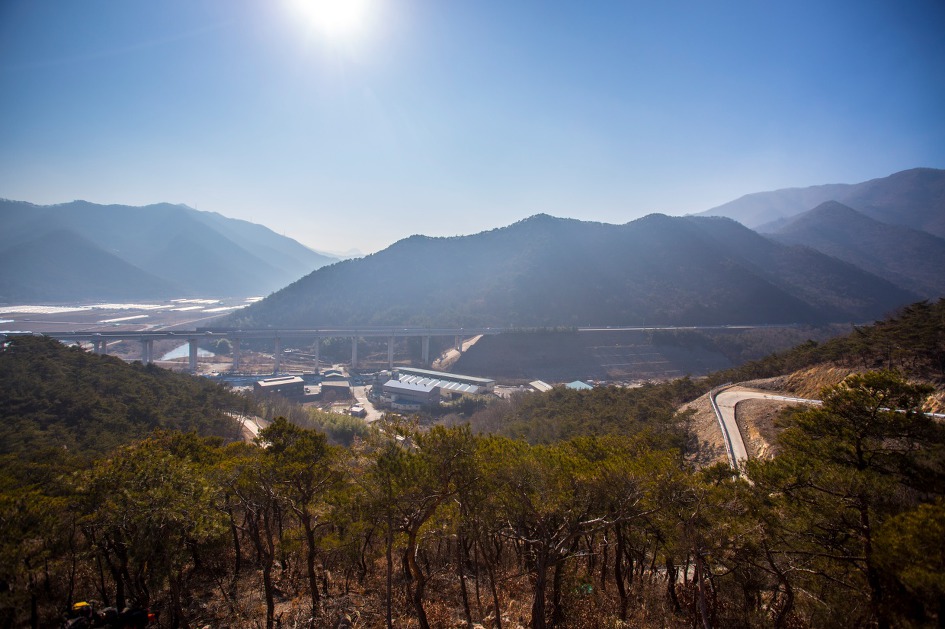▼ 오른쪽 중앙고속도로가 야산 터널을 뚫고 쭉 뻗어 있다.