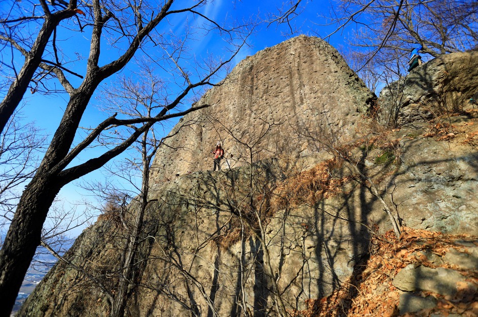 ▼ 하늘벽에 도착, 이곳 저곳 하켄이 있는 것으로 보아 등반가들이 암벽 훈련장으로 사용하는 바위같다.